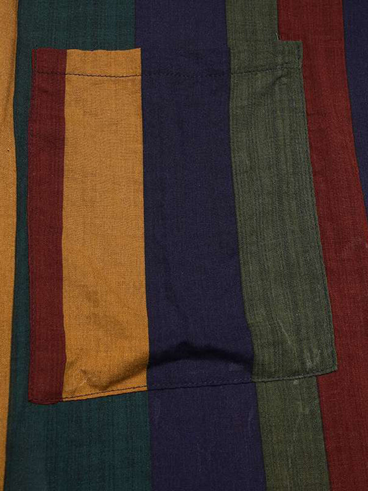 Robes - Mens Vintage Multi-Color Striped Print Button Up Home Casual Long Sleeve Robes With Pockets